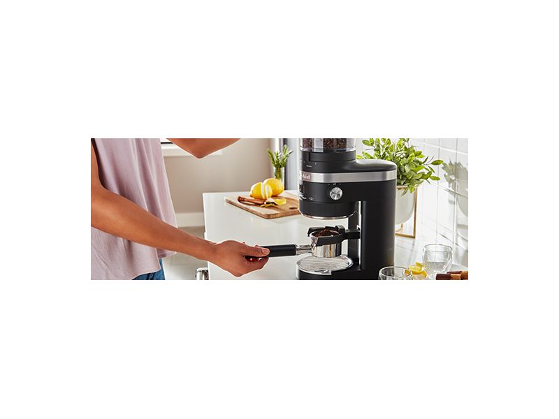 Designed for your perfect grind, every time. This KitchenAid® Burr Coffee Grinder achieves consistent grind sizes for all brew methods from French Press to Espresso and so much more, with 70 precise settings. The Automatic Smart Dosing Technology takes the guesswork out of dosing and automatically adjusts grind time to deliver the proper volume and consistency. And, its compact design fits under most kitchen cabinets, so it’s easy to access and great for everyday use.