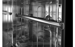 The largest third rack available has a deep, angled design that fits 6" glasses, mugs and bowls. It features rotating wash jets to clean items in the rack, a drying bar with tabs that help wick moisture off glasses and a removable utensil tray for cooking.