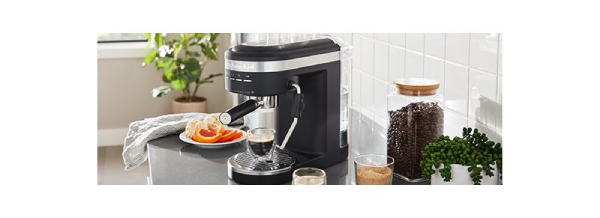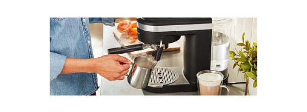 Creating quality espresso drinks at home is easy and fun with the KitchenAid® Semi-Automatic Espresso Machine. The same process used at the coffeehouse has been simplified for at-home use. Put your own personal twist on espressos, macchiatos, cappuccinos, martinis, affogatos… whatever you’re in the mood to make. Dual, smart temperature sensors maintain the perfect brewing temperature shot after shot. And the fast-heating thermocoil technology heats water up to the ideal brewing temperature in less than 40 seconds. Rich, creamy espresso is just a grind, tamp and brew away.
