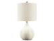 Transparent white glazed ceramic table lamp. Drum hardback shade. On/off switch. (1) E26 socket, type A bulb recommended - 60 watts max or 13 watts max CFL.