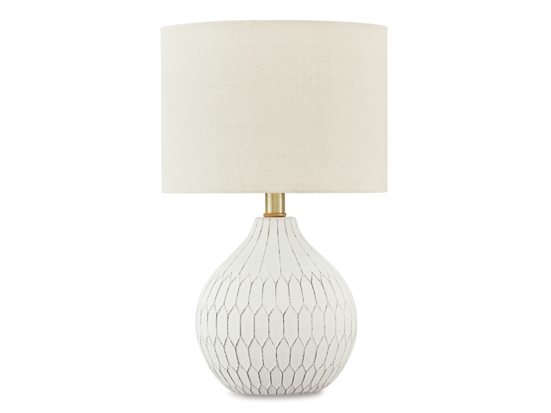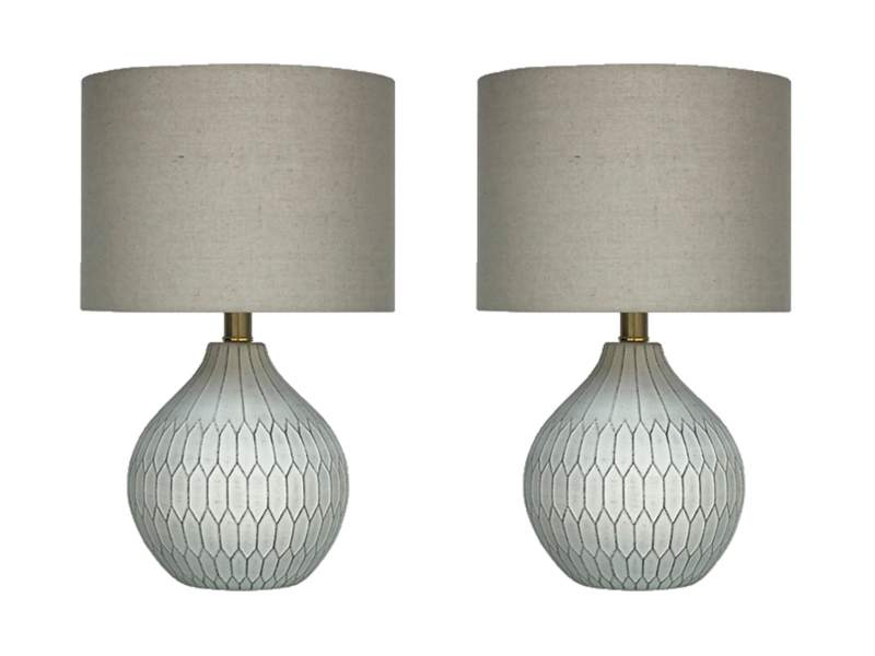 Fresh and light, the dimensional design of this delightful ceramic table lamp set borrows from a retro theme to update a transitional space. Made of ceramic with an antiqued white finish, these accent lamps infuse personality into any setting. Add them to a console or end table and bring out the bright in any decor.
