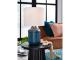 Antique teal blue glazed ceramic table lamp. Drum hardback shade. On/off switch. (1) E26 socket, type A bulb recommended - 60 watts max or 13 watts max CFL.