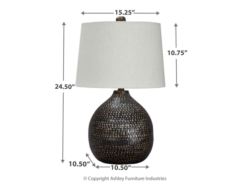 Infuse your home with the casual vibe of this table lamp set. Black finish is elevated with a goldtone circular pattern. Its slightly urban industrial design brings balance and brightness to your room with double the style.