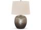 Antique silver finished hammered aluminum table lamp. Modified drum hardback shade. 3-way switch. (1) E26 socket, type A bulb recommended - 150 watts max or 25 watts max CFL. Due to the hand crafted nature of this product, some variations may occur.