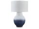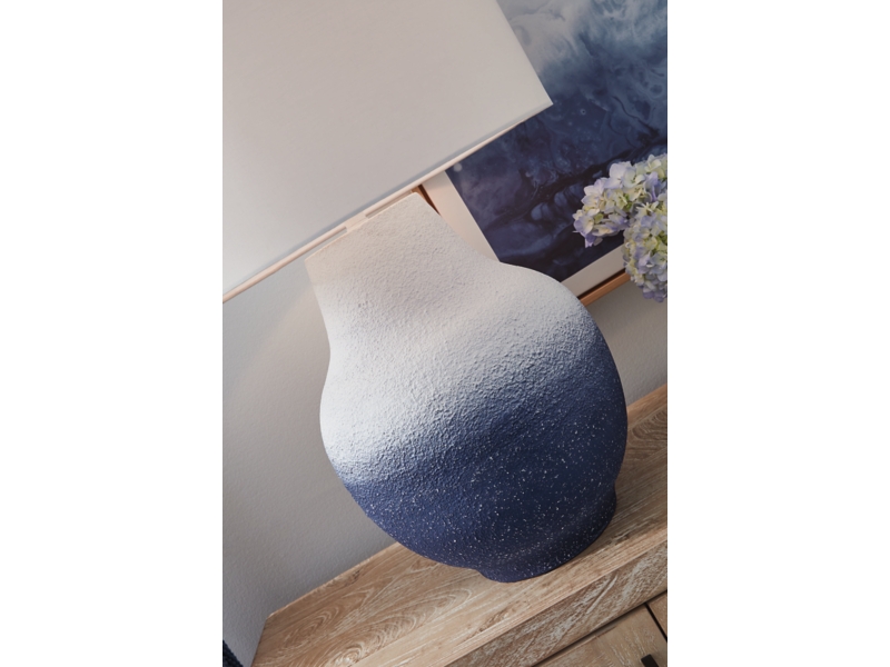 Recalling the texture of antique pottery, this table lamp incorporates a casual-meets-coastal feel into your decor. Its softly shaped silhouette is decorated in an ombre-style white and navy blue finish. Place it next to your sofa or bedside for a charming take on everyday illumination.