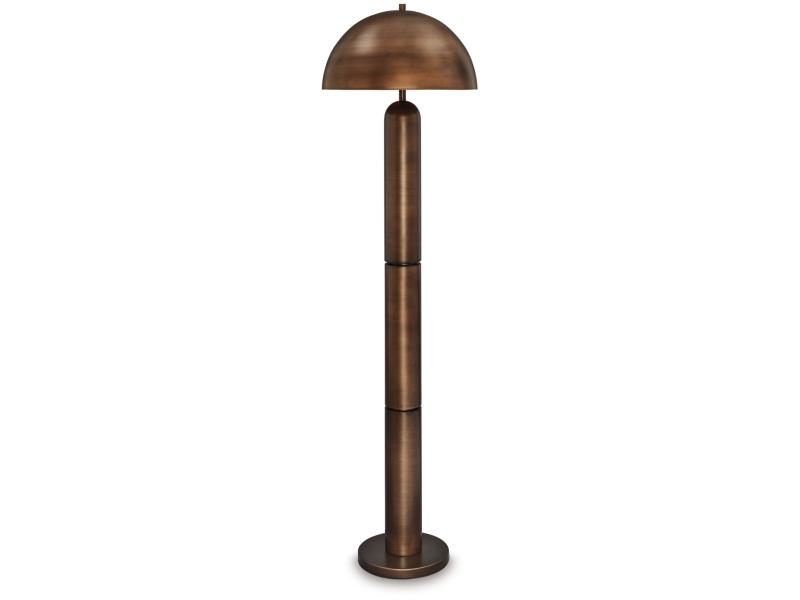 Dome sweet dome. Shine a light on your love of all things contemporary with this striking floor lamp. Its sleek antiqued copper-tone finish and bold, columnar design add a brilliantly modern touch to any room. A dome-shaped shade provides a warm and focused light, perfect for reading or creating a cozy ambiance. The matching table lamp (sold separately) is also a bright idea.