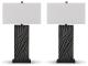 ick your style up a notch with this table lamp set. The impressive black base boasts textured detail enhanced with striking gold accents for sophisticated flair. Its eye-catching form exudes an urbane yet casual vibe, making it an easy addition to existing decor.