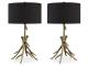 Illuminate your contemporary space with this table lamp set. Finished in an antiqued goldtone, it makes a statement displayed solo, or as a pair flanking your sofa or sectional. A black shade keeps the look right on trend.