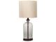 Clear seeded glass and bronze finished metal table lamp. Drum hardback shade. On/off switch. (1) E26 socket, type A bulb recommended - 60 watts max or 13 watts max CFL.