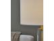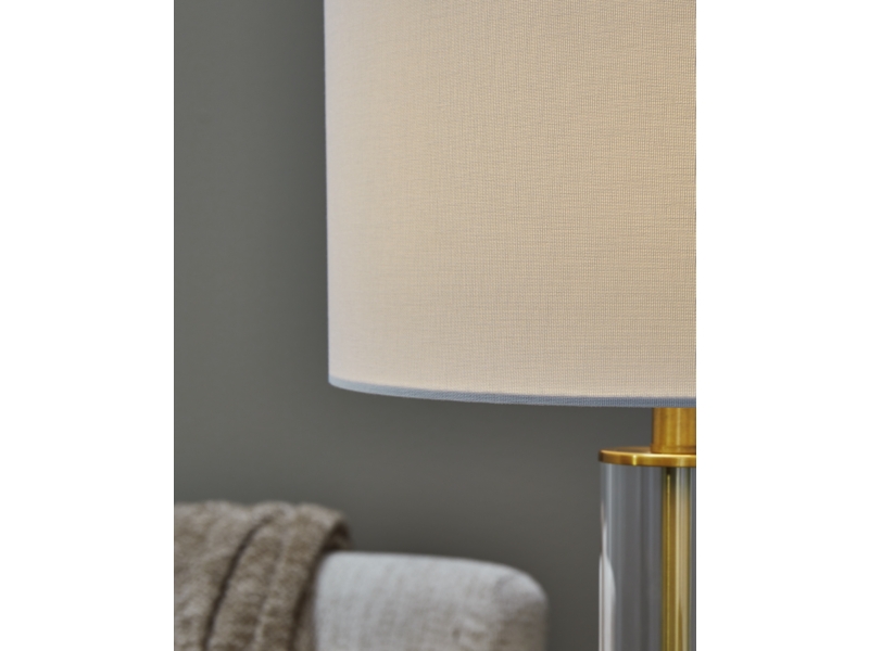 The body of this elegant table lamp has a contemporary flair, with a transparent glass cylinder that reveals a brass-tone rod inside. It's a minimal design made for maximal illumination.