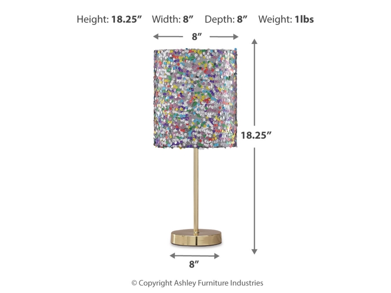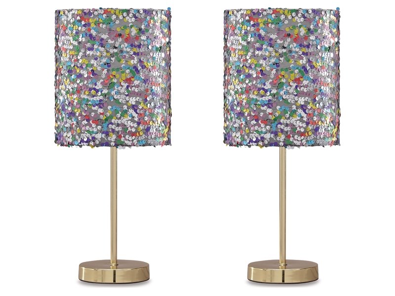 Is your little one all about the glam factor? If so, she'll love this table lamp set. Multicolored sequined drum shade lights up her room in style. Goldtone metal base is a classy touch to this glitzy design.