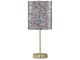 Gold finished Metal Table Lamp. Multi colored sequin drum hardback shade. On/off in-line switch. (1) E26 socket, type A bulb recommended - 60 watts max or 13 watts max CFL.