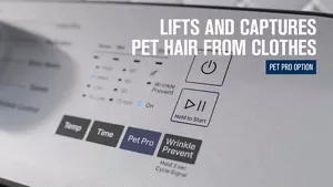 The Pet Pro option uses a no-heat, extended dry time to lift pet hair from clothes and capture it in the XL lint trap.