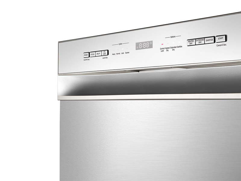 The Midea Front Control Dishwasher features advanced cleaning technology and an Extended Dry feature for spotless dishes and extra dryness. Its 7-segment digital display offers intuitive operation, while the hybrid stainless steel tub and bright interior lighting simplify loading. With flexible loading options and an NSF-certified Sanitize Cycle, cleaning is effortless and worry-free.