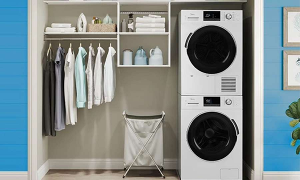 Measuring just 24", the Midea 3.1 Cu. Ft. Washer can easily fit into tight spots and can even be stacked with the 4.4 Cu. Ft. Ventless Heat Pump Dryer to optimize your space further.