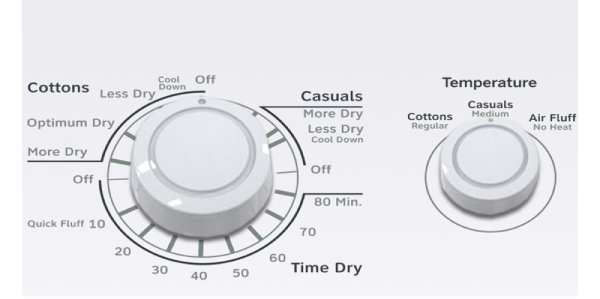 | Dryer Cycles | Casuals (More Dry / Less Dry / Cool Down) |