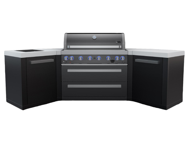 Mont Alip 805 Deluxe 45 Degree Propane Gas Island Grill with Infrared Side Burner and Rotisserie Kit in Black Stainless Steel - MAi805-BSS45C