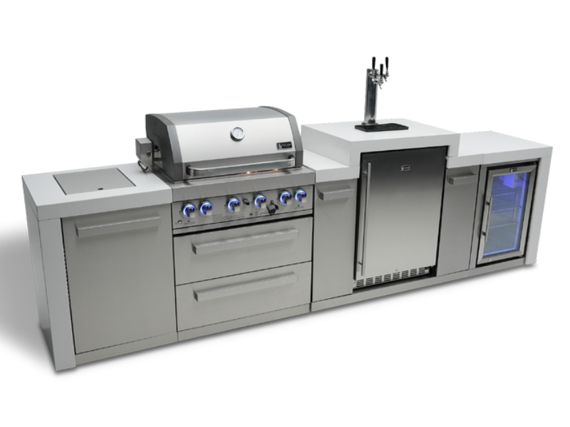 Whether you're a seasoned grilling pro or just starting out, the Mont Alpi 4-burner Deluxe Island with a kegerator and fridge cabinet has everything you need to impress your guests and enjoy delicious food and drinks.