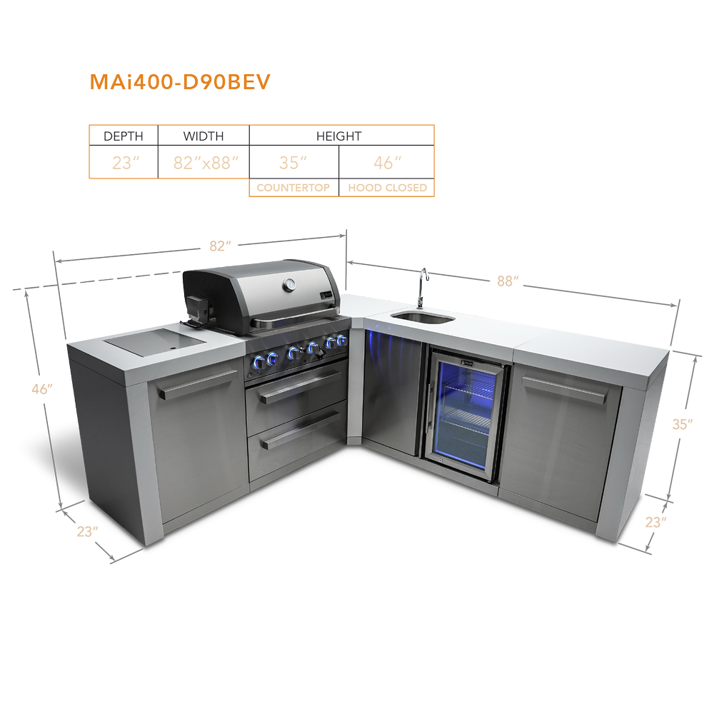 Mont Alpi 4 Burner Deluxe Island With 90 Degree Corner and Beverage Center - MAi400-D90BEV