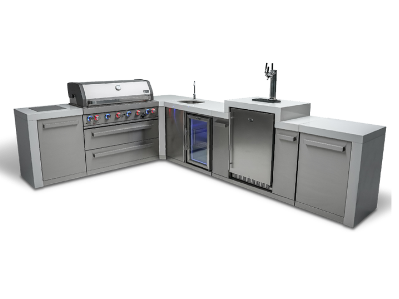 Mont Alpi 6 Burner Deluxe Island with a 90 Degree Corner Kegerator and Beverage Centre - MAI805-D90KEGBE