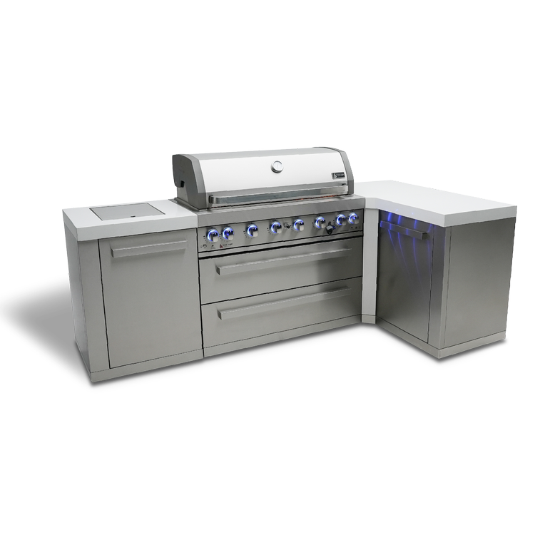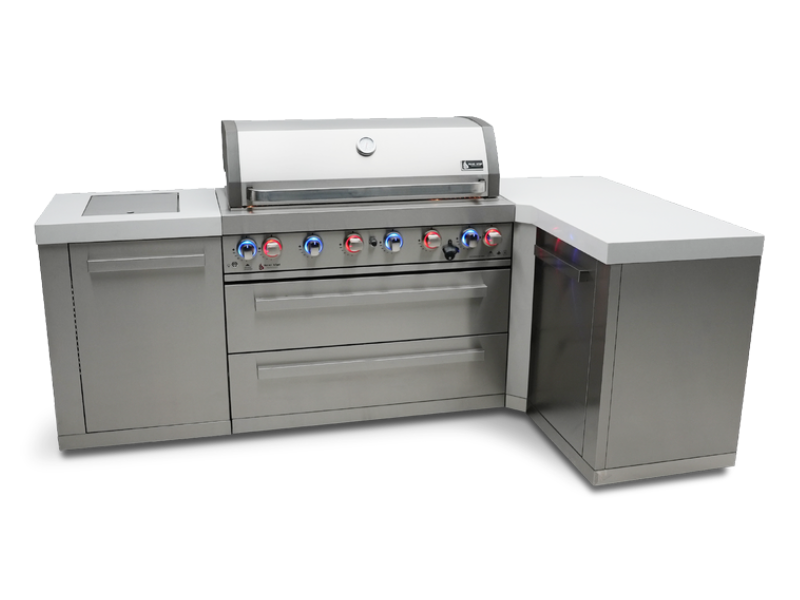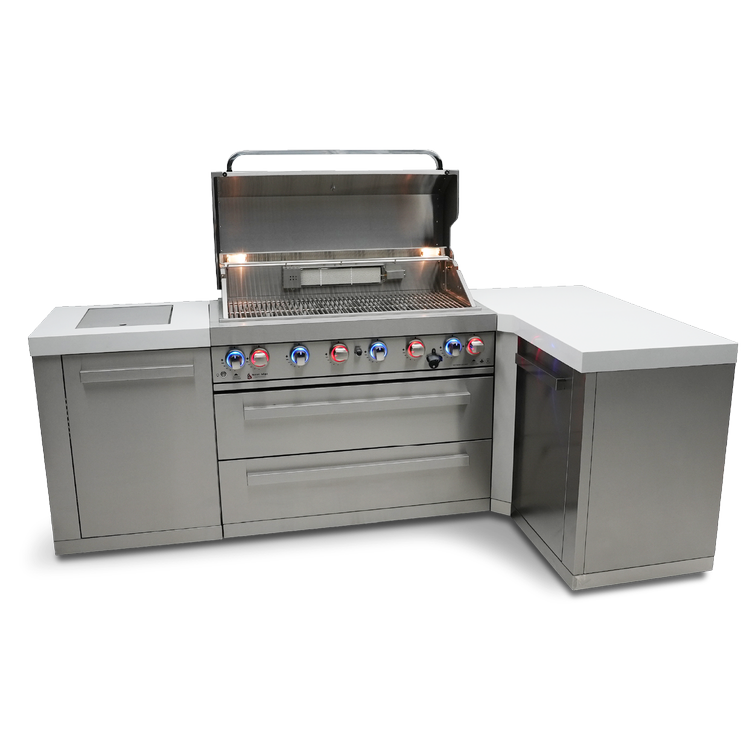 So whether you're an experienced outdoor chef or just starting out, the Mont Alpi 6-burner island with a 90-degree corner is the perfect way to take your outdoor cooking to the next level. With its unbeatable combination of power, style, and durability, this grill is the ultimate choice for any backyard chef.