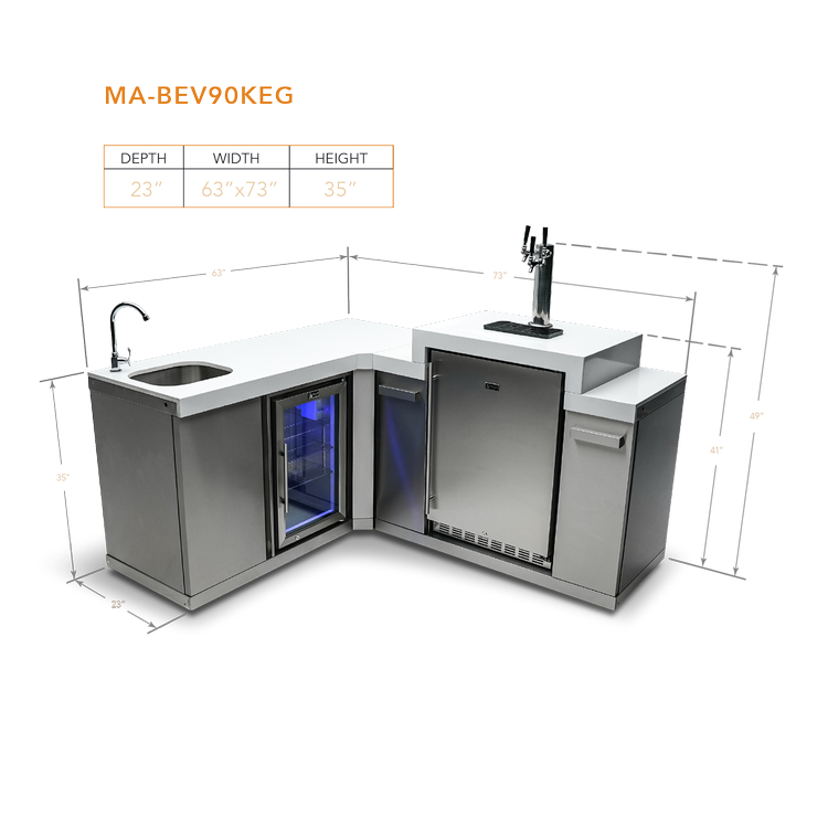 Mont Alpi Beverage Center with 90-Degree Corner and Kegerator - MA-BEV90KEG