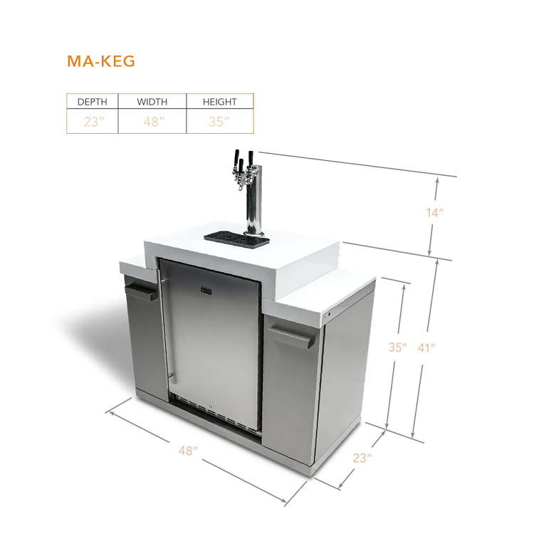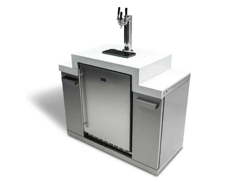 Elevate your home bar setup with the Mont Alpi Triple tap Kegerator with digital display. With the ability to store up to three kegs at once, you'll have plenty of options for your next party or gathering. The sleek and stylish design features a tiered white granite top surface that is not only easy to clean but also adds an extra touch of elegance to your space.