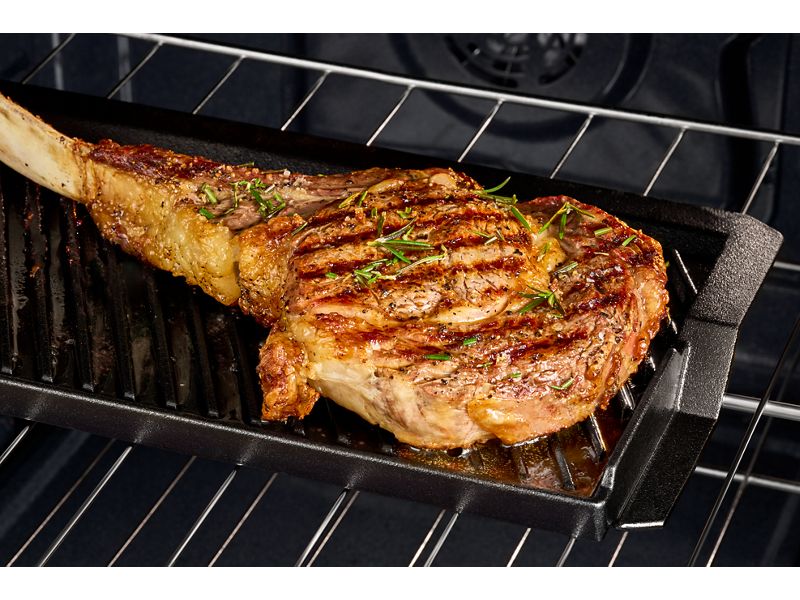 Get the perfect sear all year with Grill Mode. Firing up to 550º, Grill Mode delivers crispy, charred outsides and a juicy, flavorful center. Just insert the cast iron grill/griddle, and you're on your way to that signature grilled taste right from the convenience of your kitchen—no backyard needed.