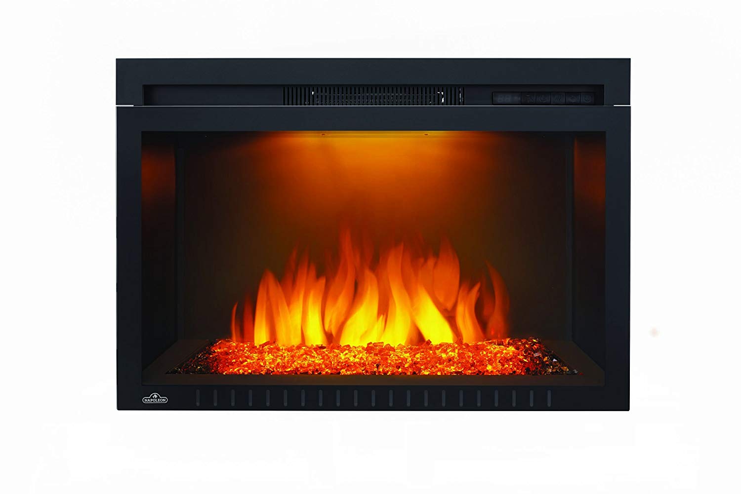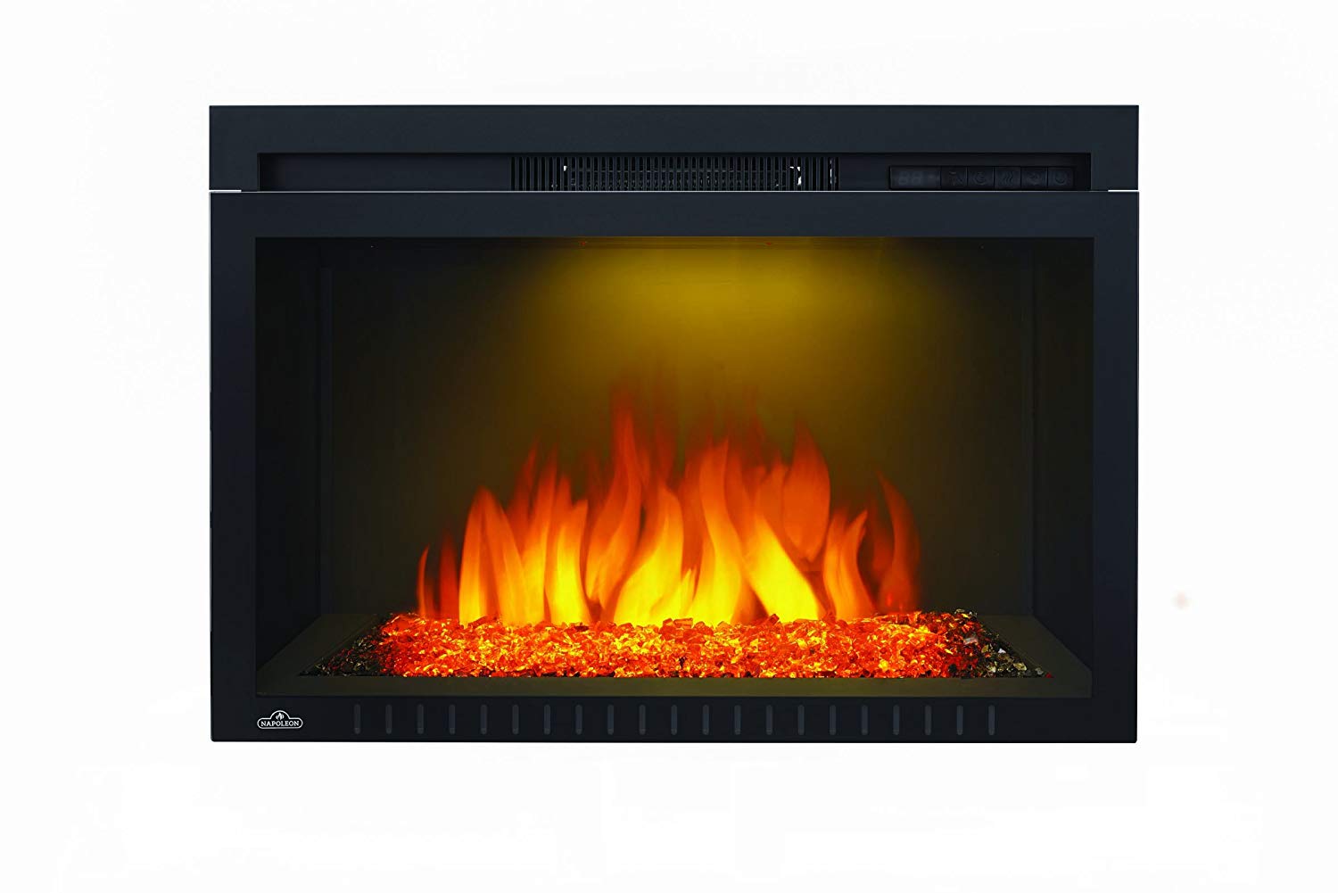 Just by plugging in this unit you can completely transform any room. The Napoleon Cinema™ Glass 29 Built-In Electric Fireplace does just that. Install this Electric Fireplace in to the wall for a custom look without the need for a chimney or gas fitter. Set the mood instantly with complete control over flame height, ember lights, heat intensity, and our unique NIGHT LIGHT™ feature. The Cinema™ Glass 29 Built-In Electric Fireplace sets the perfect mood, renewing any room in the house.