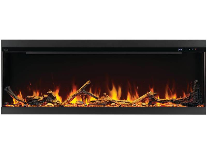 The Astound 62 FlexMount Electric Fireplace is the ideal addition to comfortable and connected living. Our unique spark technology further enhances the flames for intense realism, while the inclusion of Beach Fire logs and Woodland media customize the unit to match your personal tastes. Use the touch panel, included remote, voice, and mobile device control with the Napoleon Home App for unmatched mastery over your fireplace experience. Eco mode consumes less energy, while Boost mode adds an extra hit of heat on those chilly days. Customize your heat and color settings for each day of the week by setting a schedule. Thirteen ember bed and top light colors allow you to set the mood while optional and included glass and log sets ensure this fireplace matches your aesthetic. Not just a pretty fireplace, with its supremely flexible installation options and easy maintenance, the Astound can personalize any room or commercial space.