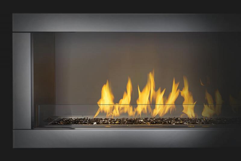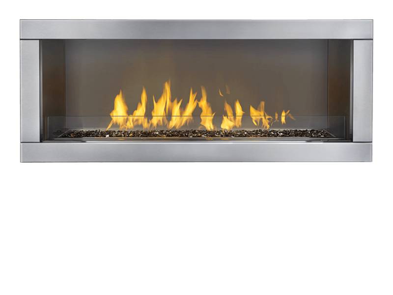 The Napoleon Galaxy™ 48 Outdoor Gas Fireplace is truly unique with a linear, sleek modern design adding to the excitement of outdoor living. Napoleon's Galaxy™ 48 outdoor linear gas fireplace is also available as a See Thru (GSS48ST) unit and is constructed of weather resistant brushed stainless steel for maximum outdoor durability. The Galaxy™ 48 features a glass wind deflector to ensure operation in windy conditions as well as a safety valve that turns the gas supply off if the flame goes out.