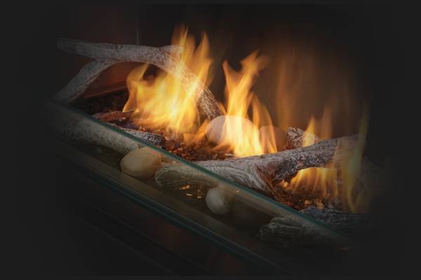 Rocks in a variety of shapes, sizes and colors bring a natural, outdoorsy feel to your fireplace