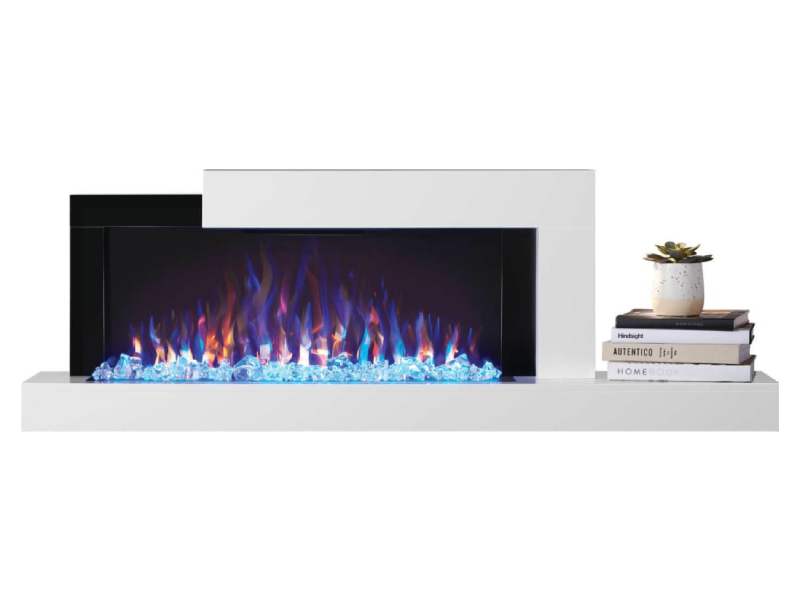 - The modern, minimalist style of the Stylus electric fireplace will add a contemporary feel to any space with its clean graphical lines and monochromatic Colour scheme