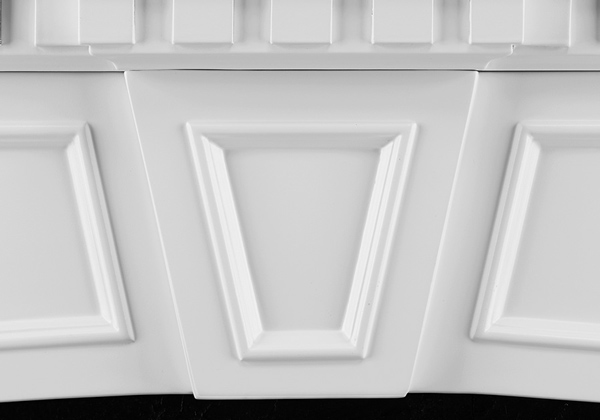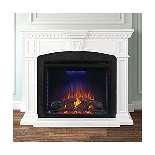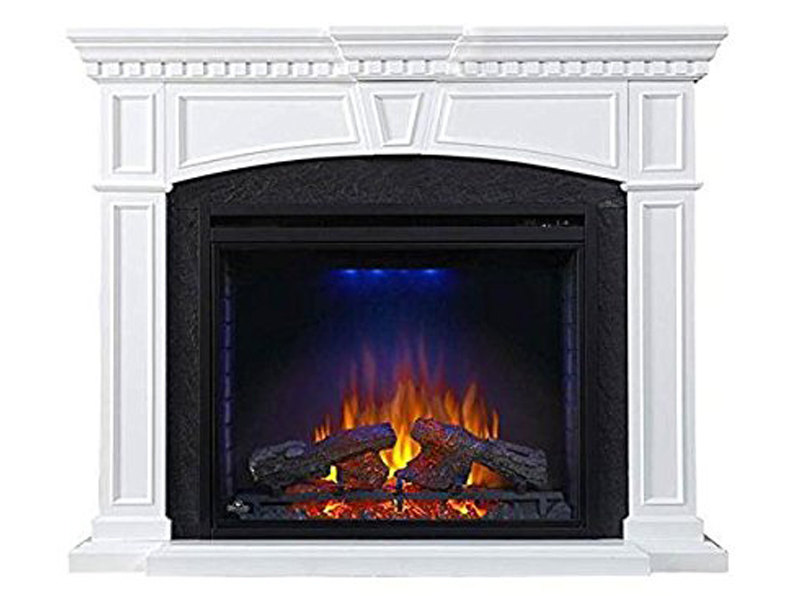 The Taylor Electric Fireplace Mantel Package by Napoleon encases your fireplace with decorative features in a white finish. The black slate styled surround creates a striking contrast against the white finish and produces a modern and pure look for your fireplace. Dentil moulding, ornamental focus point and inset panels all emerge together creating an elegant and timeless piece set upon a prominent bevelled base. Comes with the Napoleon Ascent™ 33 built-in electric fireplace.