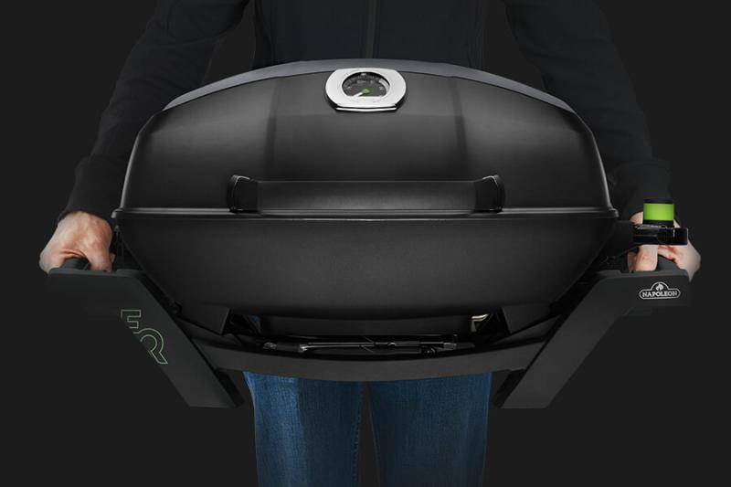 Napoleon's TravelQ PRO285 Portable Electric Grill is stylish, all-black with a cast aluminum, high-topped lid design lets you take portable grilling to the gourmet level. The windproof design will hold heat in. High heat searing is a snap and you'll know it's a Napoleon with the iconic WAVE cooking grids for those distinctive sear marks. Like your favorite cast iron skillet, the porcelain coated cast iron cooking grids heat evenly and provide a non-stick surface for your food, seasoning like a cast iron skillet. The thermostat and burners are removable for quick and easy cleaning of the porcelain drip tray. Easy to carry and set up, this grill is perfect for any adventure. You can't beat this professional grill in a portable package.