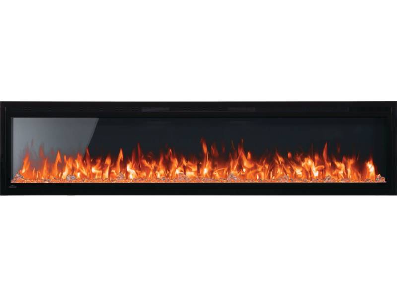 Completely transform any space with the Entice 72 Wall-Hanging Electric Fireplace. The full flame pattern creates a striking visual impact, especially with the ability to change the flame color and ember bed to match your mood and style. Have full control over your fireplace with the remote, easily adjusting the flame intensity, colors, ember bed color, brightness, blower, heat output, and timer. Ready to go right out of the box, no gas fitter required, just hang the Entice on the wall and plug in. The shallow depth means that this fireplace doesn't intrude into your living space. A reflective rear panel expands the depth of the flames for a more immersive experience without taking up physical space in your room. For a more seamless look, this electric fireplace can be fully or partially recessed into a wall. See the fireplace and not the frame with a minimalist, nearly frameless finish. Complete any room with an easy-to-install Entice 72 Wall-Hanging Electric Fireplace.