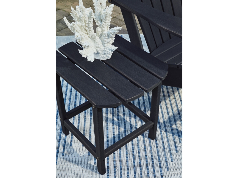 Add cottage-quaint charm to your outdoor oasis with this outdoor end table in black. Made of MEGA-TUFF® high-density polyethylene material, it’s sure to weather the seasons beautifully. Designed to shed rainwater, the table’s slatted top with gently rounded corners provides exceptional form and function.
