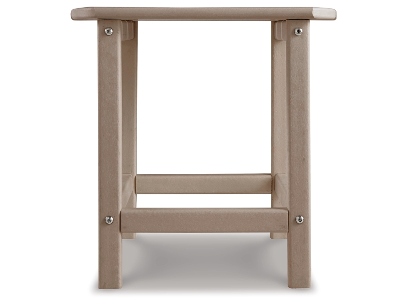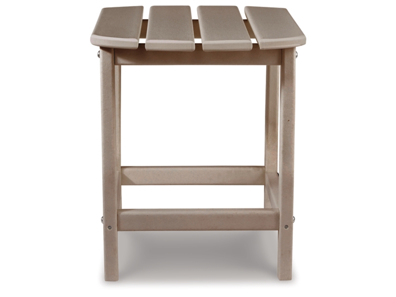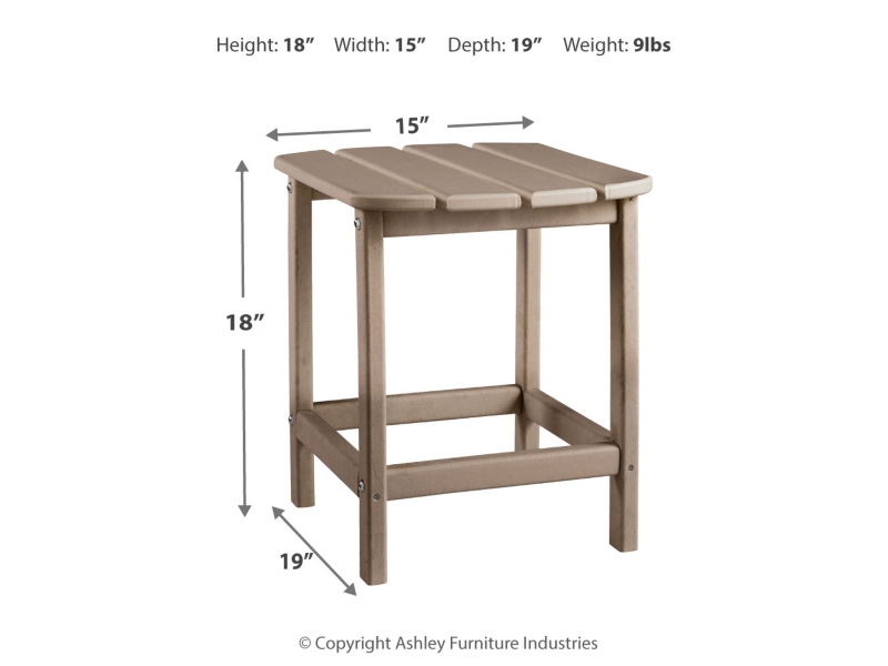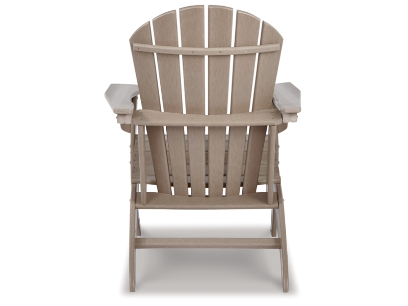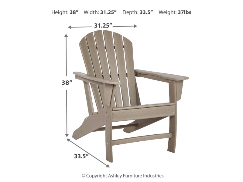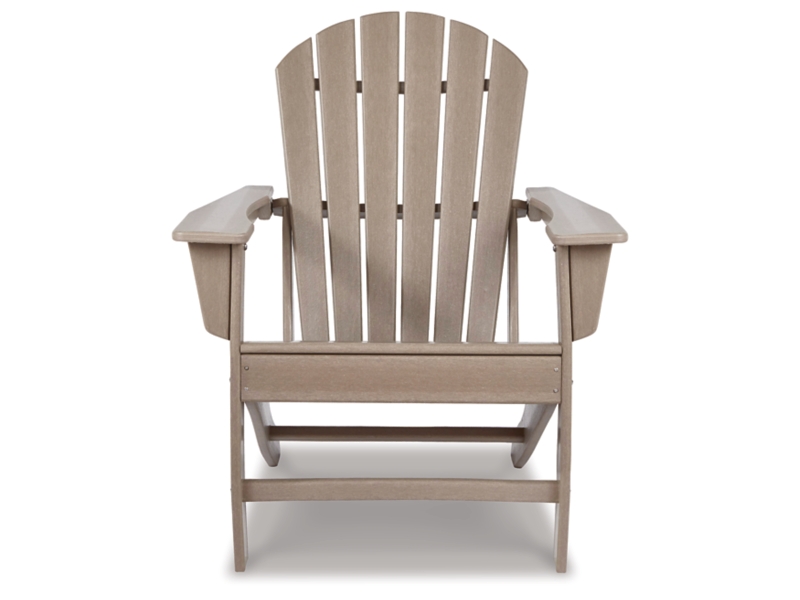Ashley Express. Made with virgin high density polyethylene material. All with textured grain driftwood finish. P014-827 includes cup holder feature.