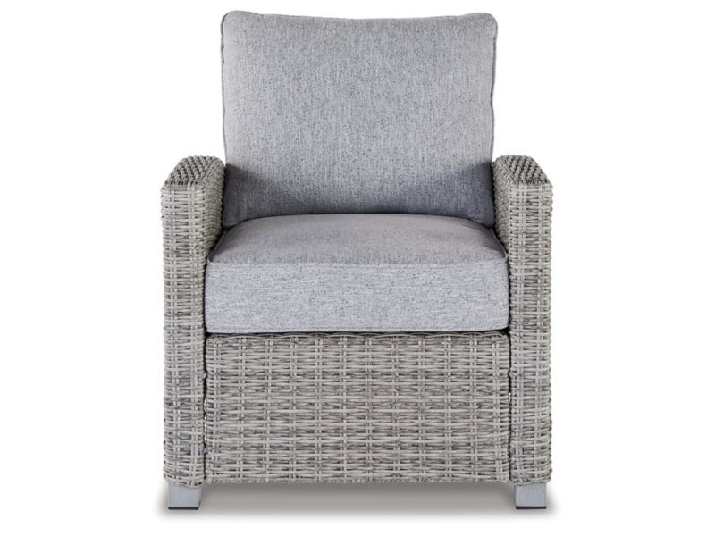 Indulge in backyard bliss. This outdoor lounge chair has a straightforward sense of style with its light gray resin wicker and wood-look finish. Gray high-performance Nuvella+™ fabric covers the cushioned seat and back, weathering the elements and keeping your aesthetic casually cool.