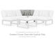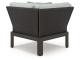 This outdoor corner chair with cushion is made with aluminum, resin wicker and Nuvella+™ (polyester) UV-resistant, cleanable fabric. Pairs with other items in the series to make an outdoor sectional.