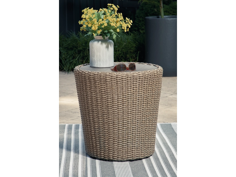 This outdoor package completes your outdoor seating area with its fresh take on casual comfort. Handwoven resin wicker over curving aluminum frames balances streamlined style and exceptional durability. High-performance beige Nuvella+™ fabric wraps the seat and back cushions, protecting against the natural elements.
