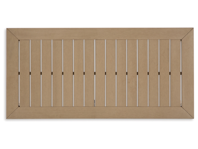 This coffee table is a beautiful addition to any outdoor living space. Effortless in its simplicity, this piece echoes your easygoing sensibilities. Combining durable, cutting-edge engineered materials, its Weatherwood construction in a blond wood color enhances the contemporary design. Pair this table with the matching sofa and chairs for a spectacular backyard or patio seating arrangement.