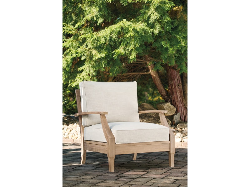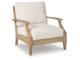 This outdoor lounge chair effortlessly pairs natural beauty with must-have durability. Its eucalyptus wood frame withstands the elements while making a high-style impression. And you can relax on the porch or poolside without the stress of added upkeep—this chair's UV-resistant performance fabric is a breeze to clean.