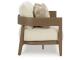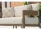 Millennium Collection. Wood-look aluminum. Nuvella+ high performance white linen fabric. Dining chairs, no assembly required. No assembly required for loveseat and sofa. Loveseat includes two throw pillows and sofa includes four throw pillows.