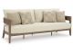 Elevate the appeal of easy-breezy living with this outdoor sofa. Made to look like wood yet durable enough to weather the elements, it's sure to serve you and your besties well, year after year. The gently curved piece features cushions wrapped in Nuvella+™ high-performance fabric for plush refinement. Patterned accent pillows infuse delightful texture.