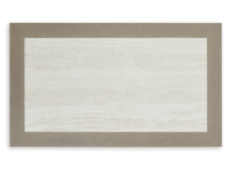 Millennium Collection. Wood-look aluminum. Sintered stone tile table tops. Nuvella+ high performance beige fabric. Assembly required.