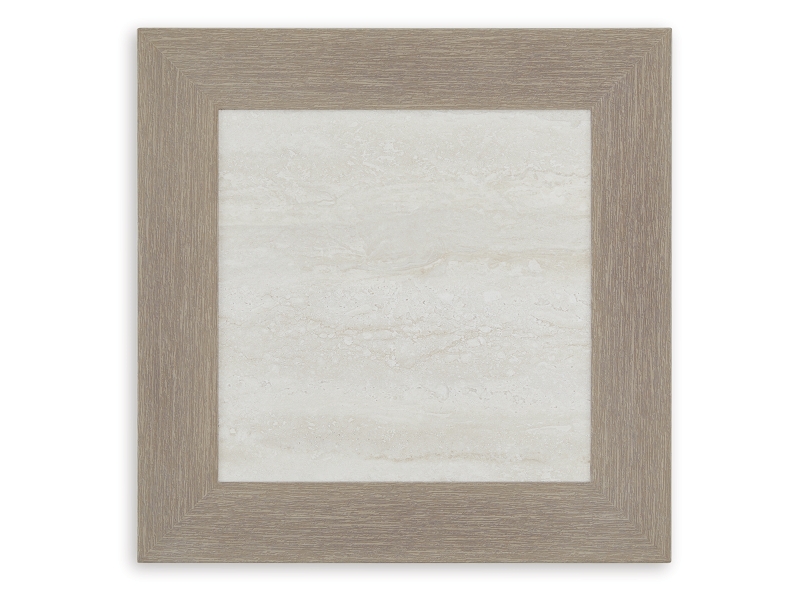 Millennium Collection. Wood-look aluminum. Sintered stone tile table tops. Nuvella+ high performance beige fabric. Assembly required.