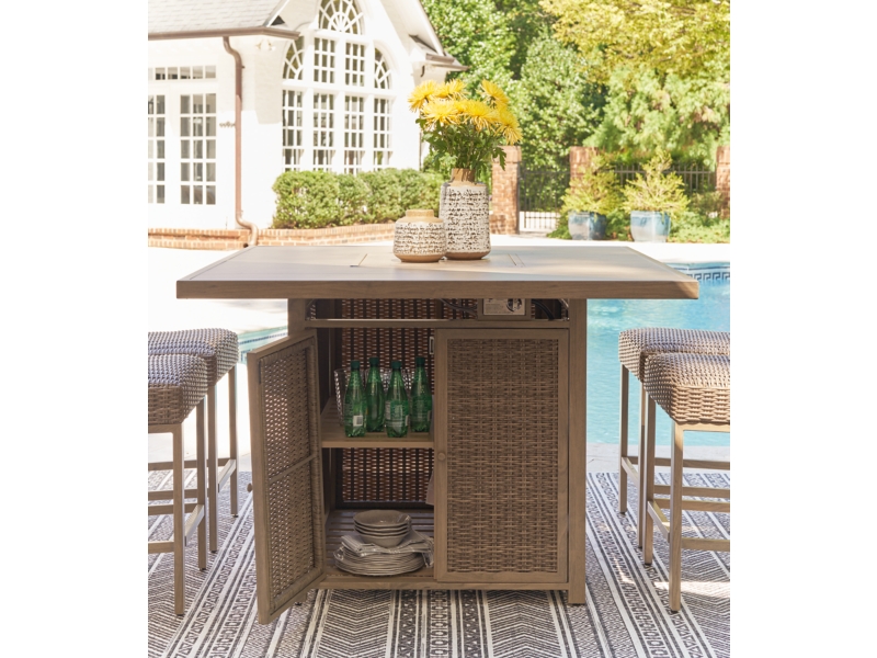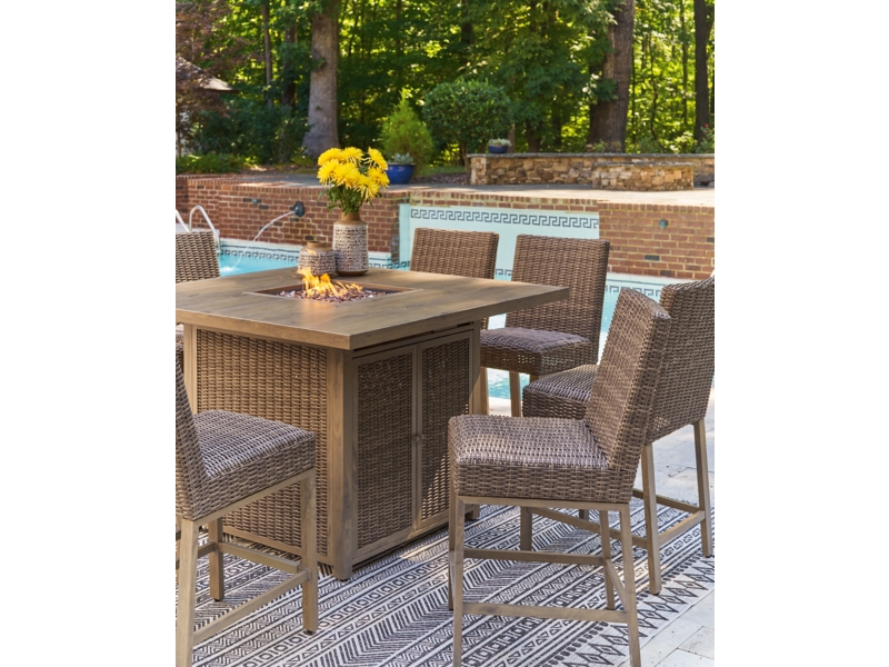 Signature Design by Ashley Walton Bridge Outdoor Bar Table with Fire Pit - P749-665