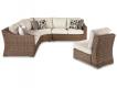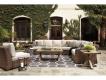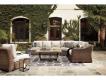 For indoor or outdoor use. Cushioned resin wicker dining and modular seating. 4 throw pillows included with LAF/RAF loveseat. 2 throw pillows included with curved corner chair. Dining, cocktail and end tables have porcelain tops. Rust free aluminum frames. Some assembly required. High performance Nuvella fabric. Collection includes many dining and seating options. P791-701/702/625 are porcelain tops. Deep seating includes P791-835 loveseat and P791-838 sofa (includes 2 throw pillows) and P791-821 swivel lounge chair. To order 4-piece seating with 2 swivel lounge chairs, sofa and porcelain top cocktail table, order P791-821(2), P791-838 and P791-701. Assembly required. P791-773 includes CSA approved 30,000 BTU stainless steel burner, glass beads, burner cover and protective weather cover. P791-815 driftwood resin wicker woven on an aluminum frame. Nuvella high performance fabric. Adjustable positions. Stainless steel hardware. Assembly required.