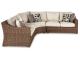 For indoor or outdoor use. Cushioned resin wicker dining and modular seating. 4 throw pillows included with LAF/RAF loveseat. 2 throw pillows included with curved corner chair. Dining, cocktail and end tables have porcelain tops. Rust free aluminum frames. Some assembly required. High performance Nuvella fabric. Collection includes many dining and seating options. P791-701/702/625 are porcelain tops. Deep seating includes P791-835 loveseat and P791-838 sofa (includes 2 throw pillows) and P791-821 swivel lounge chair. To order 4-piece seating with 2 swivel lounge chairs, sofa and porcelain top cocktail table, order P791-821(2), P791-838 and P791-701. Assembly required. P791-773 includes CSA approved 30,000 BTU stainless steel burner, glass beads, burner cover and protective weather cover. P791-815 driftwood resin wicker woven on an aluminum frame. Nuvella high performance fabric. Adjustable positions. Stainless steel hardware. Assembly required.